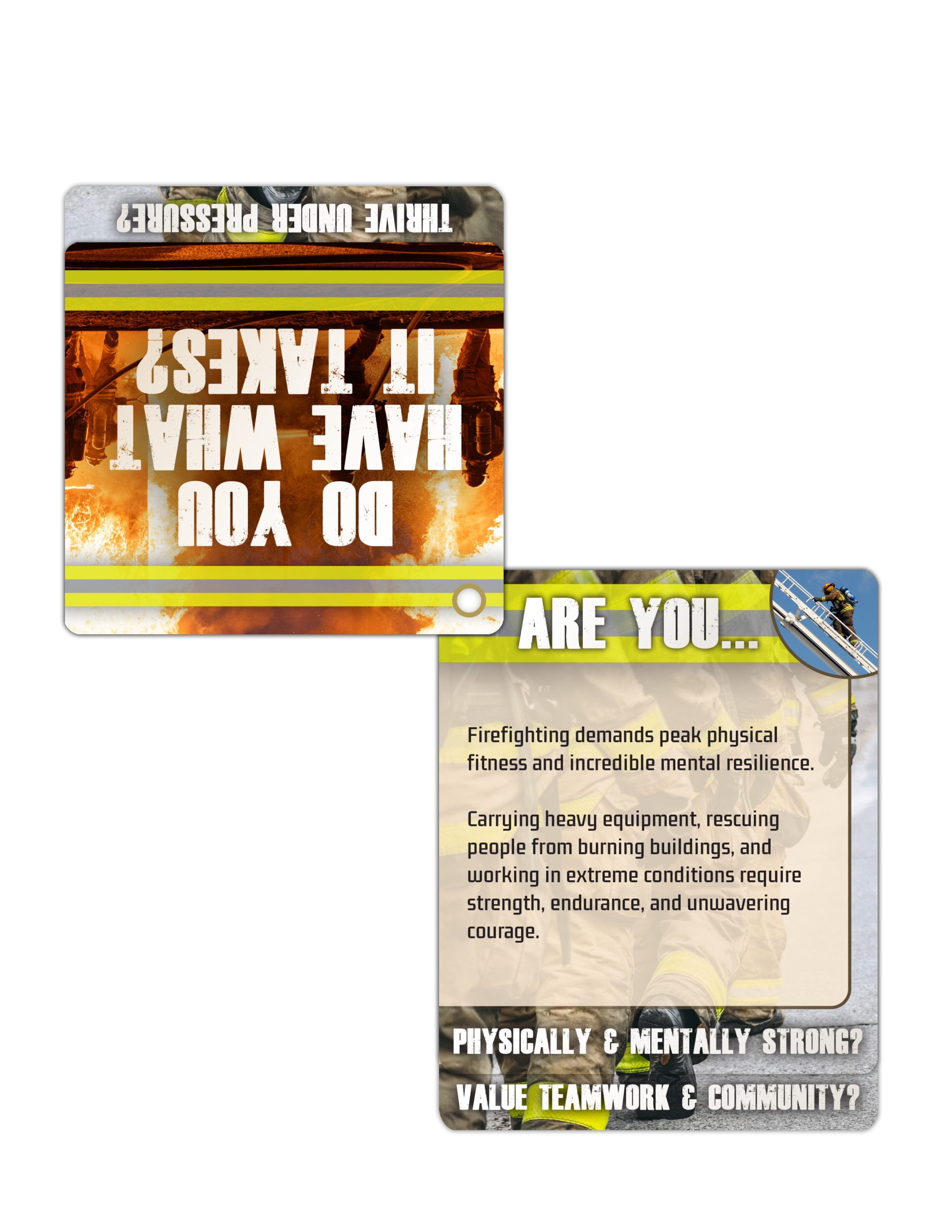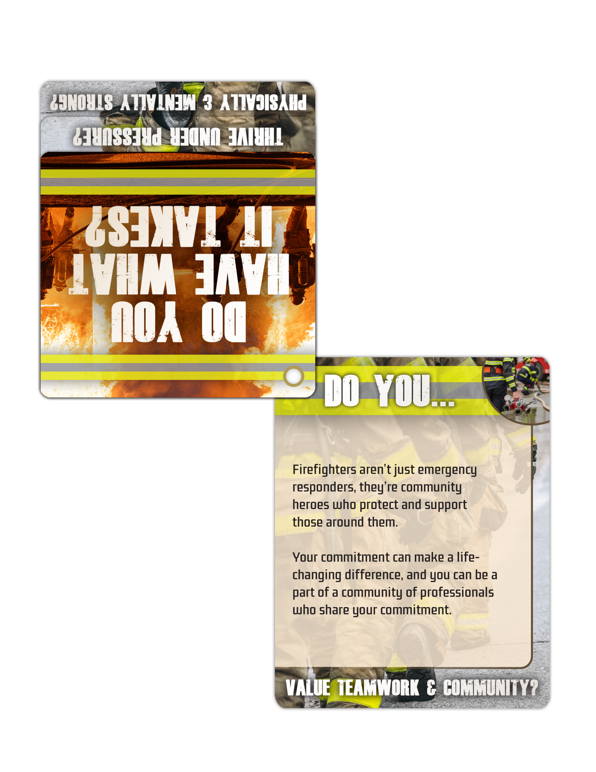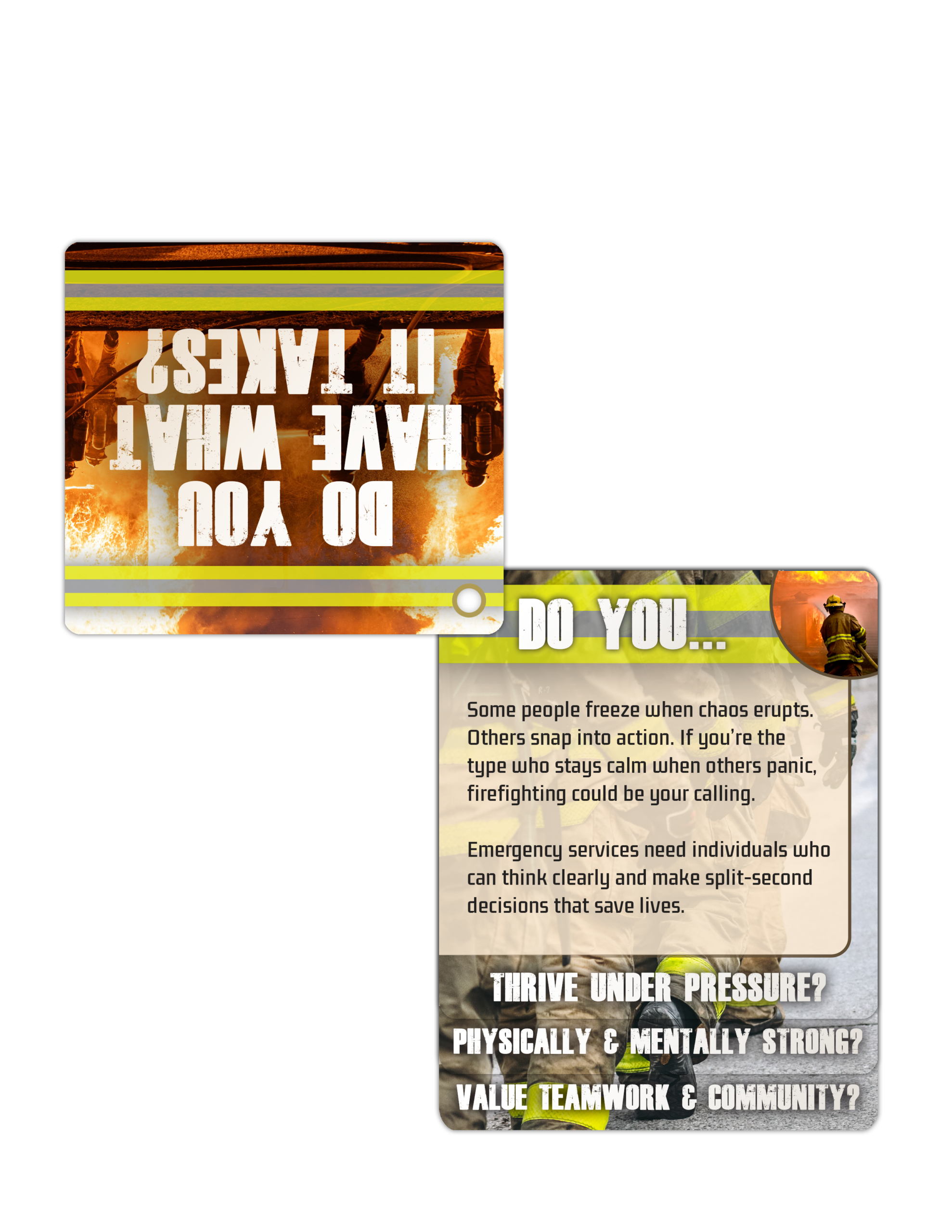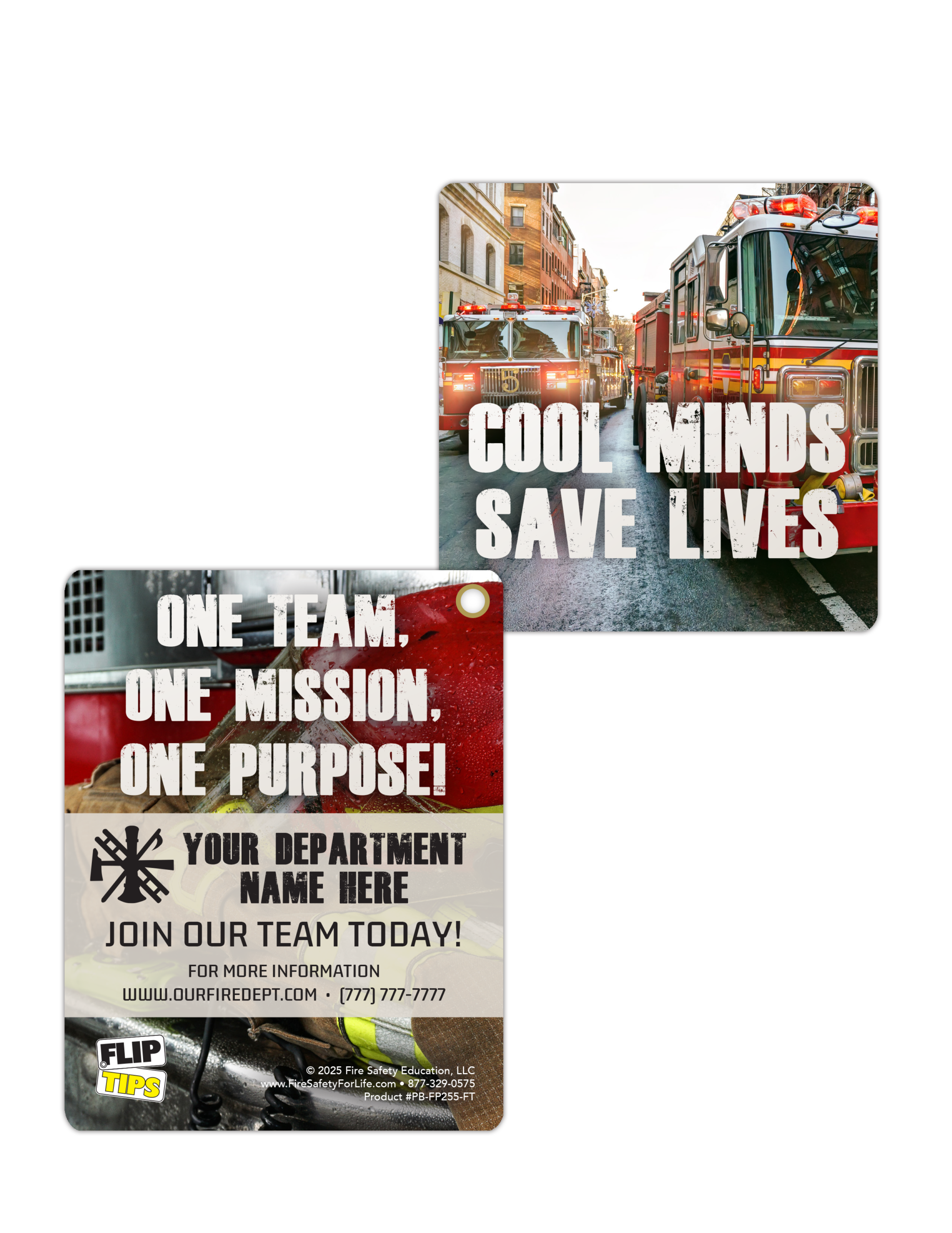 With each flip of the card, potential recruits will learn about the physical and mental demands of the job, the rewards of serving the community, and the steps needed to embark on their heroic journey. Whether you’re inspiring high school students, connecting with career changers, or engaging with community members, these flip tips are a powerful way to convey your message.