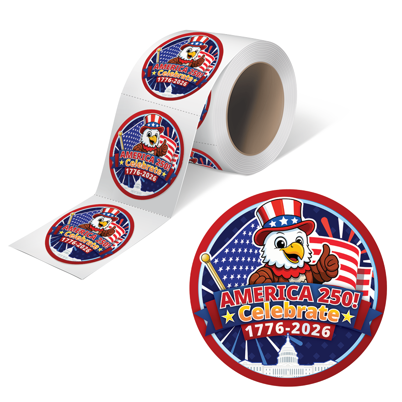 - Vibrant, full-color stickers celebrating 1776–2026