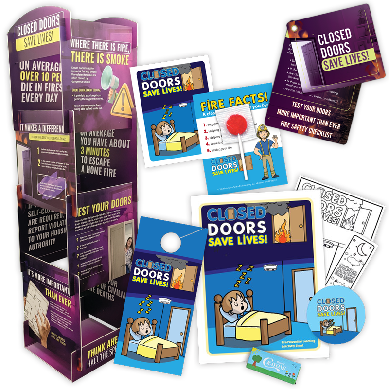 Perfect for expos, school assemblies, health fairs, and Fire Prevention Week events, the Closed Doors Save Lives Event Package Plus turns a simple safety concept into a clear, repeatable takeaway. Families don’t just hear the message once—they encounter it, engage with it, and take it home.