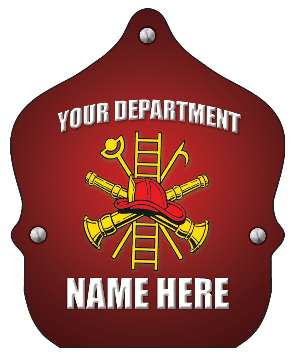 The shield artwork features traditional firefighting tools set within a bold deep red design—symbolic, recognizable, and easy to read. Add your department name to that shield, and suddenly the message becomes unmistakably yours. It’s the detail kids remember, parents notice, and communities associate with trust.